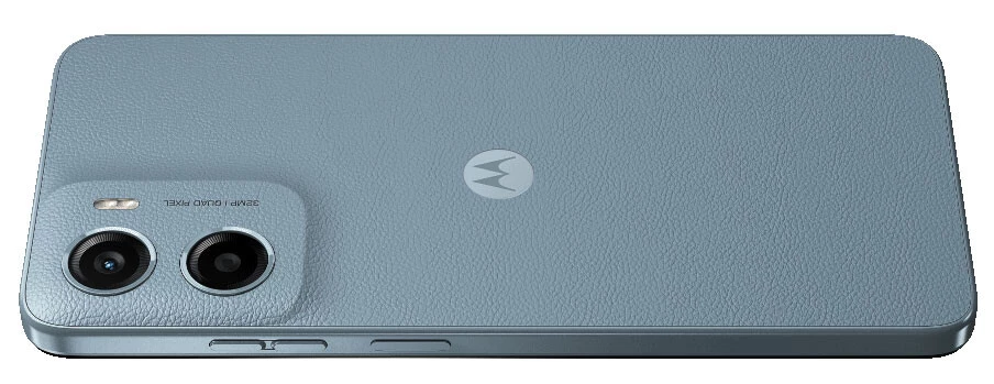 El Motorola Moto E15 combina elegancia y resistencia en un diseño moderno con acabados en cuero vegano que aportan suavidad al tacto y un estilo sofisticado, protegido por vidrio