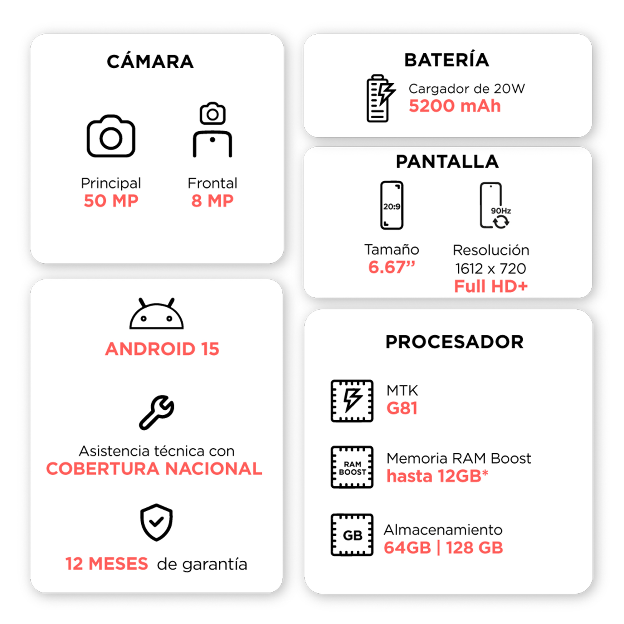 Motorola G05 4+64GB Disponible S/ 299.00 Stock por sucursal Stock por sucursal cantidad Agregar al carro Avísame cuando llegue Características PrincipalesPantalla: LCD 6,7" HD+Procesador: MediaTek Helio G81Cámara Posterior: 50 MpxBatería: 5,200mAh