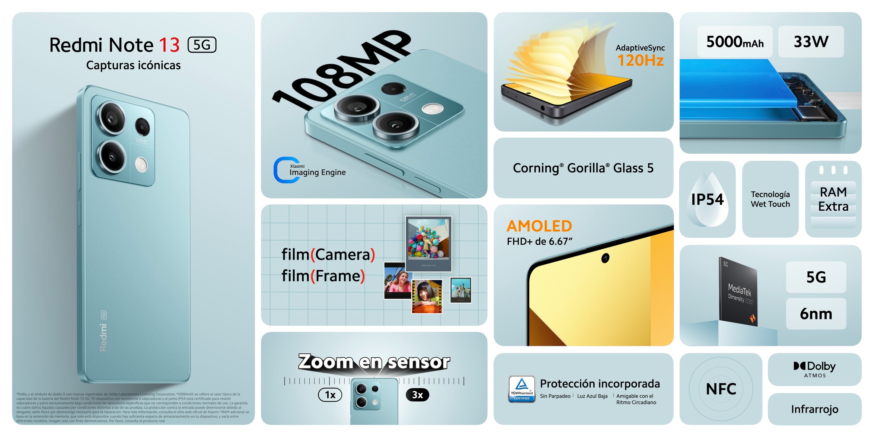 Redmi Note 13 5G 8+256GB Nuevo Ingreso S/ 999.00 Stock por sucursal Stock por sucursal cantidad Agregar al carro Avísame cuando llegue Características PrincipalesPantalla: AMOLED 6,67" FHD+Procesador: MediaTek Dimensity 6080Cámara Posterior: 108MpxBatería: 5,000mAh