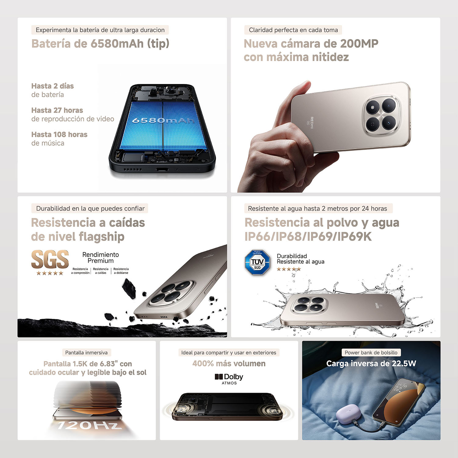 Redmi Note 15 Pro 5G 8+512GB Nuevo Ingreso S/ 1, 499.00 Stock por sucursal Stock por sucursal cantidad Agregar al carro Avísame cuando llegue Características PrincipalesPantalla: AMOLED 6,83" 1.5K, 120HzProcesador: MediaTek Dimensity7400Cámara Posterior: 200MpxCámara Frontal: 32MpxBatería: 6,580mAh