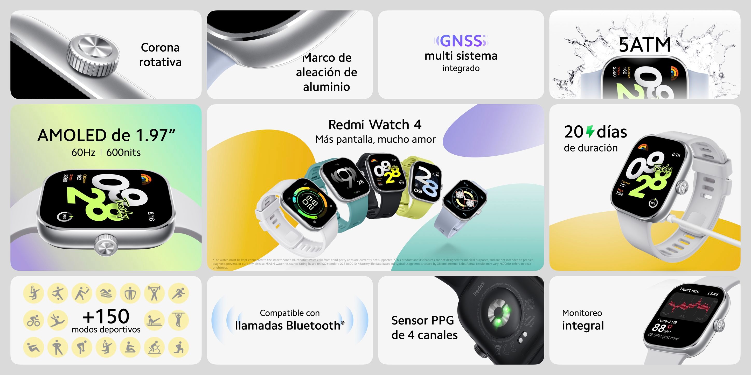 Redmi Watch 4 Disponible S/ 249.00 Stock por sucursal Stock por sucursal OBSIDIAN BLACK SILVER GRAY cantidad Agregar al carro Avísame cuando llegue Características PrincipalesPantalla AMOLED de 1,97", 60 HzResistencia al agua 5ATM150 modos de ejercicios Duración de 20 días