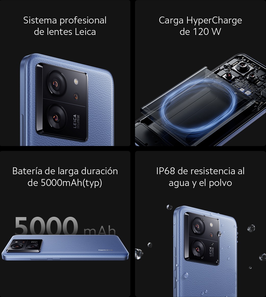XIAOMI 13T 5G 12+256GB S/ 2, 099.00 Stock por sucursal Stock por sucursal cantidad Agregar al carro Avísame cuando llegue Características PrincipalesPantalla: Oled 6.67” QHDProcesador: Dimensity 8200Cámara Posterior: 50 MpxBatería: 5,000mAh