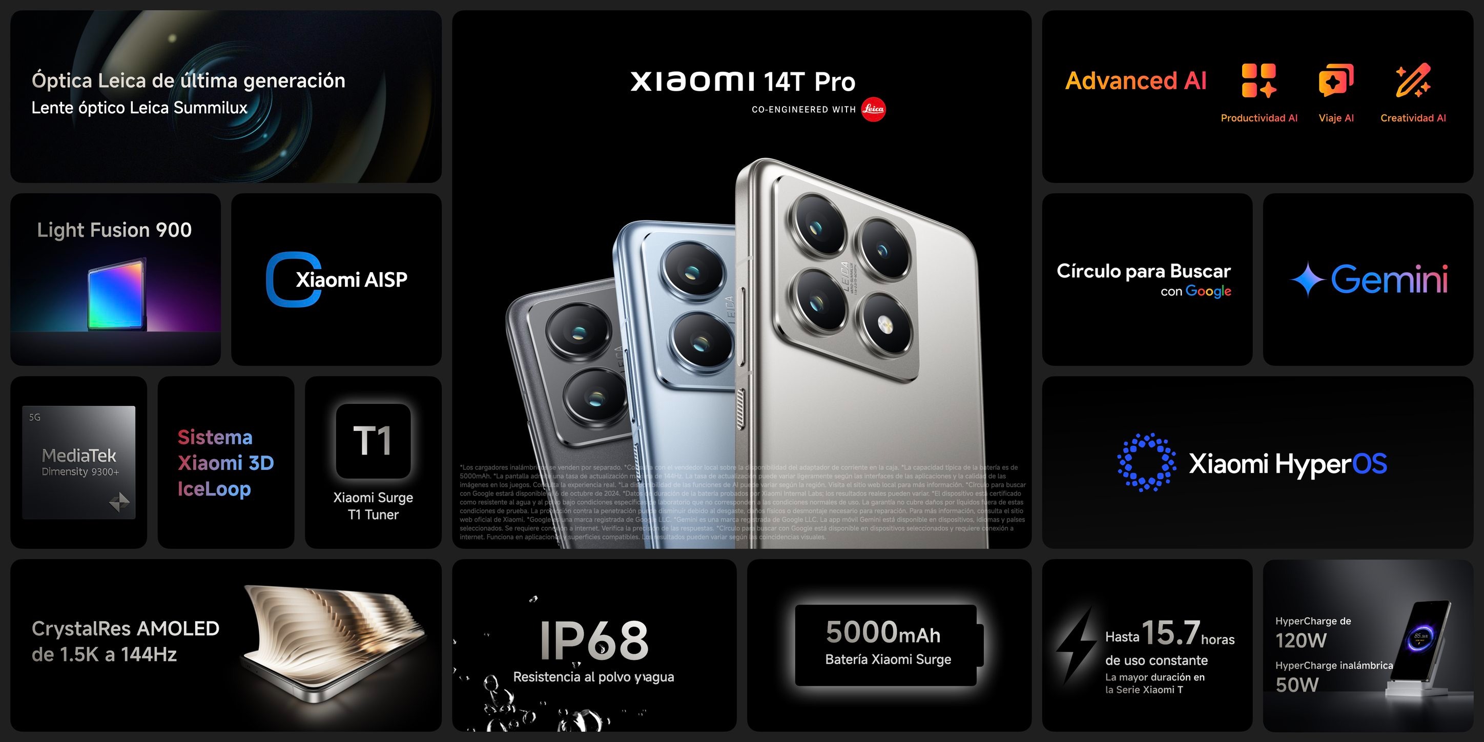 Xiaomi 14T Pro 12+512GB Disponible S/ 2, 599.00 Stock por sucursal Stock por sucursal cantidad Agregar al carro Avísame cuando llegue Características PrincipalesPantalla: AMOLED de 6,67" QHD+Procesador: MediaTek Dimensity 9300+Cámara Posterior: 50 MPxCámara Frontal: 32 MPXBatería: 5.000mAh