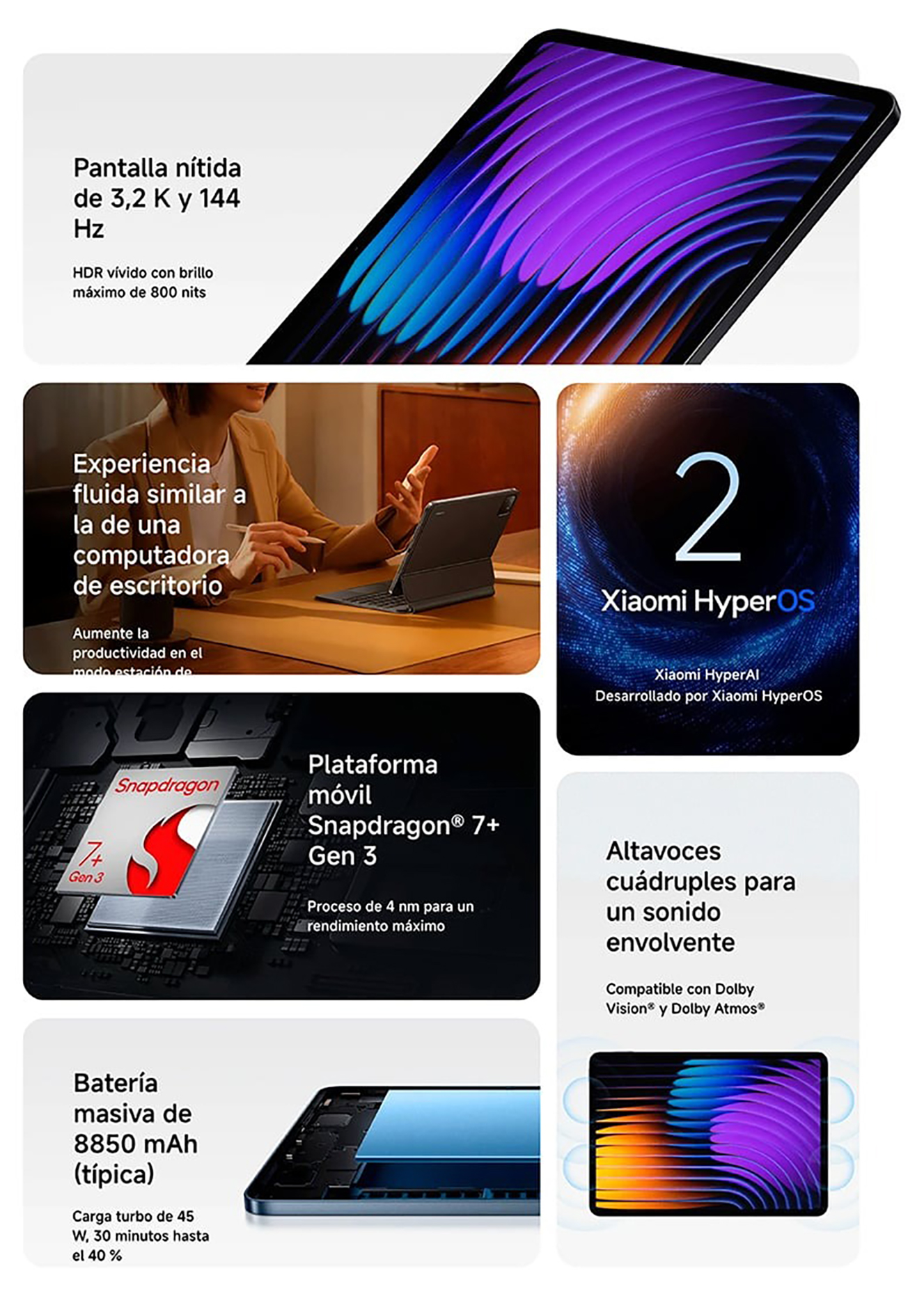 Xiaomi Pad 7 8+256GB Nuevo Ingreso S/ 1, 299.00 Stock por sucursal Stock por sucursal cantidad Agregar al carro Avísame cuando llegue Características PrincipalesPantalla: LCD 11.2" y 3.2K, 144HzProcesador: Snapdragon 7+ Gen 3Cámara: 13 MPBatería: 8,850mAh