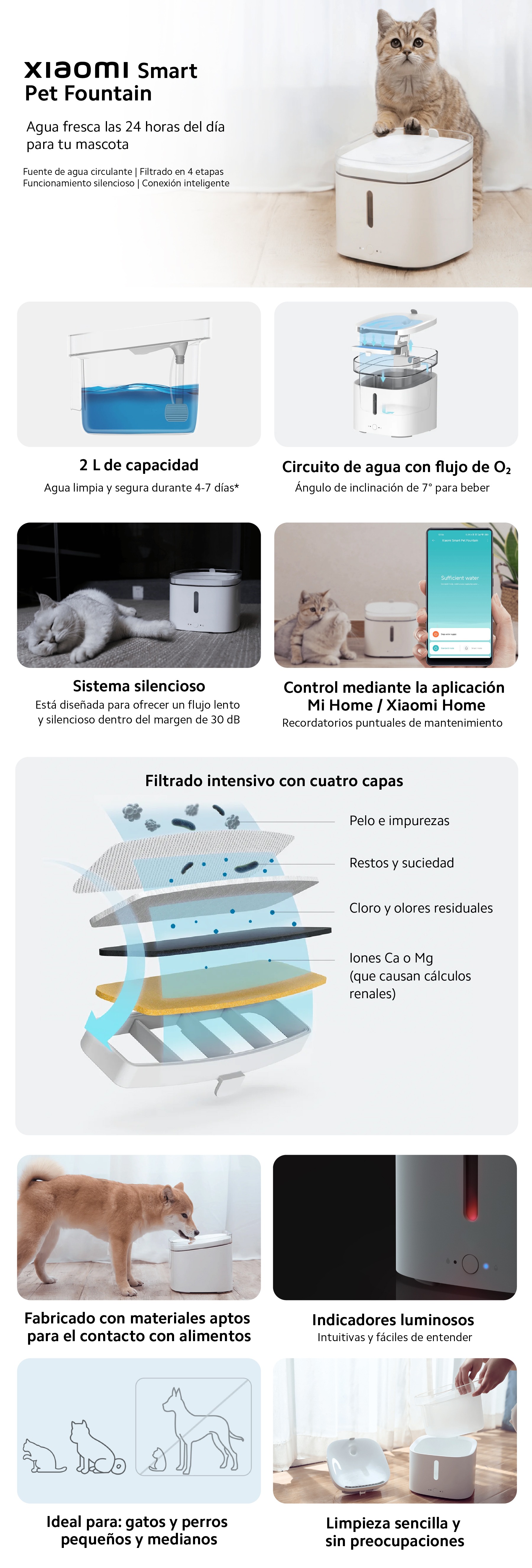Xiaomi Smart Pet Fountain Disponible S/ 199.00 Stock por sucursal Stock por sucursal cantidad Agregar al carro Avísame cuando llegue Características PrincipalesFuente de agua circulanteFiltrado en 4 etapasFuncionamiento silenciosoConexión inteligente