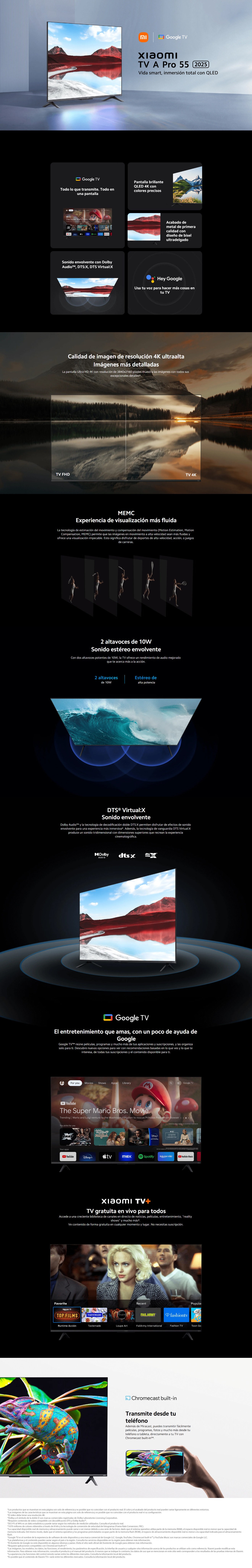 Xiaomi TV A Pro 55" 2025 Disponible S/ 1, 349.00 Stock por sucursal Stock por sucursal cantidad Agregar al carro Avísame cuando llegue Características PrincipalesPantalla Qled 4K Ultra HDAudio envolvente con Dolby Audio™, DTS-X y DTS® Virtual:XAsistente de Google integradoConectividad: Bluetooth 5.0 y Wi-Fi 2.4GHz/5GHz